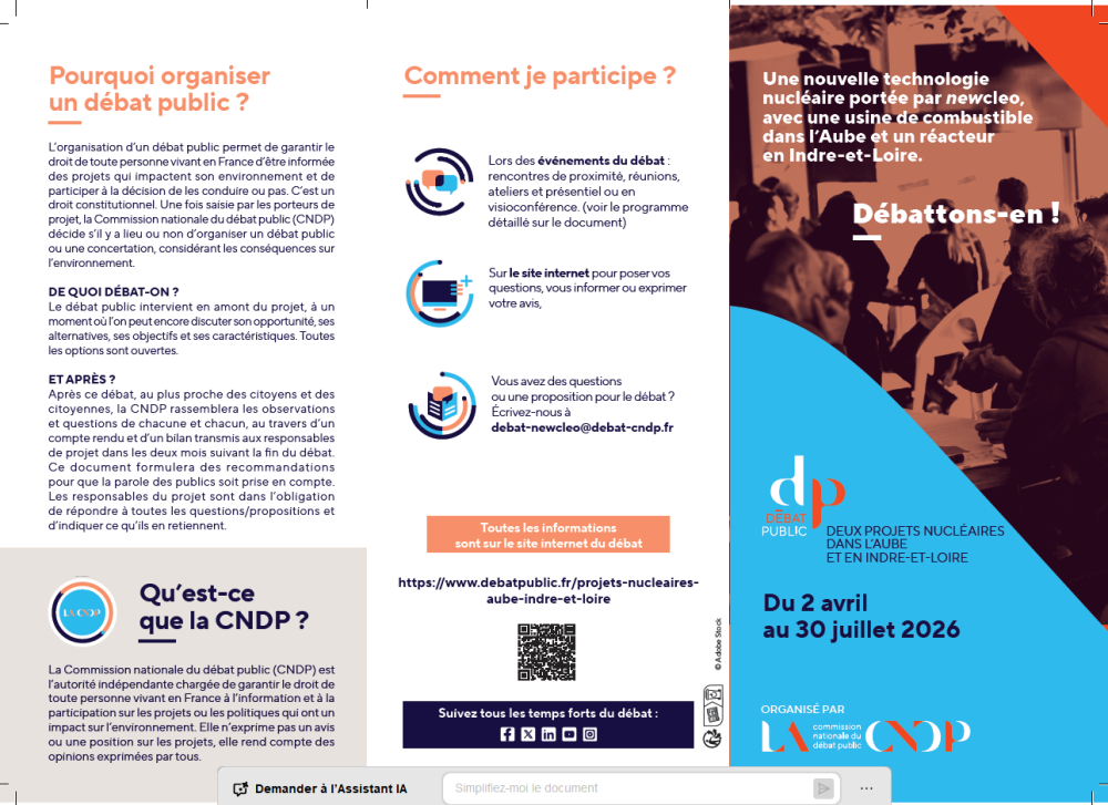 Réunion d'ouverture du débat public Newcleo le 9 avril à 18h30 à l'Agora de Nogent-sur-Seine